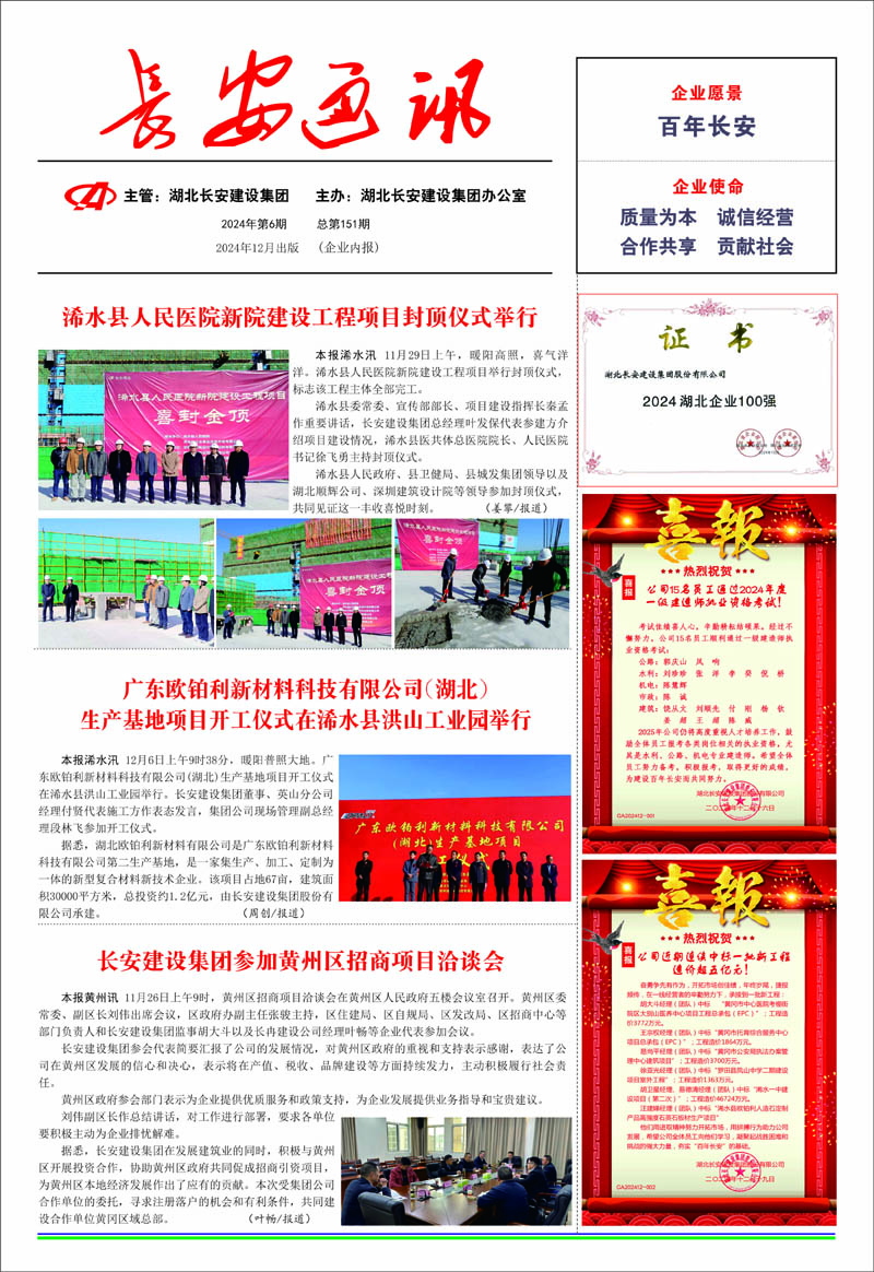 • 2025-11-03 集團(tuán)公司榮獲2025湖北企業(yè)100強(qiáng)稱號(hào),位列第77名