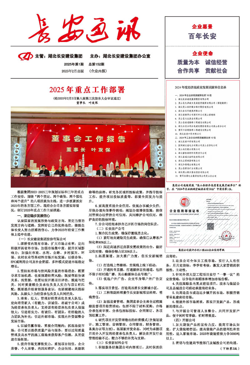 • 2025-11-03 長(zhǎng)安建設(shè)集團(tuán)聘任徐正新同志為湖北長(zhǎng)安建設(shè)集團(tuán)股份有限公司總經(jīng)理、余招剛同志為英山縣長(zhǎng)安房地產(chǎn)開發(fā)有限公司總經(jīng)理